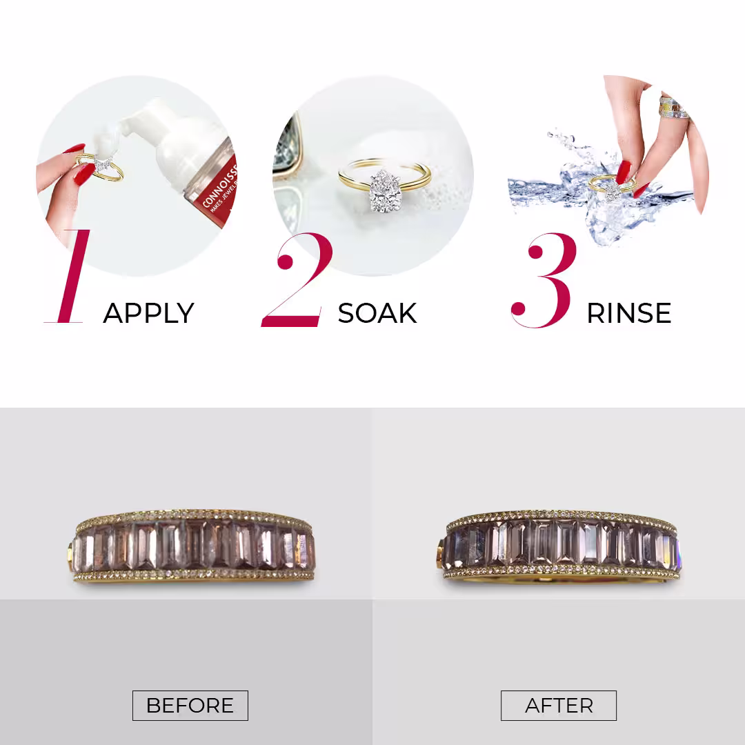 Get your jewellery looking as good as new! Safely melt away dirt and grime with Connoisseurs’ all-purpose cleansing foam. This foaming solution allows for the product to get into the crevices of your jewellery – keeping jewellery shinier than ever!