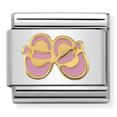 Charm for the Original Composable Classic bracelet with pink Shoes in stainless steel, 18K gold and enamel. Made in Italy. Expecting a girl: here’s the perfect Charm for her mother!