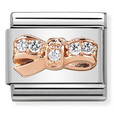 Original Nomination Charm with Bow for Composable Classic Bracelet in stainless steel, 9K rose gold and Cubic Zirconia. Made in Italy. The perfect Charm for anyone who loves a touch of romance.