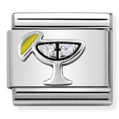 Original Charm for Nomination’s Composable Classic bracelet in stainless steel, sterling silver and white Cubic Zirconia with a Cocktail. Made in Italy. A reminder of your amazing summer nights spent sipping your favourite cocktail.