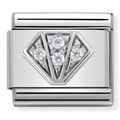 Original Charm for Nomination’s Composable Classic bracelet in stainless steel, sterling silver and white Cubic Zirconia with Diamond symbol. Made in Italy. A diamond is forever!