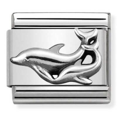 Original Charm for Nomination’s Composable Classic bracelet in stainless steel with Dolphins in sterling silver. Made in Italy. Two dolphins in perfect unity, just like a mother is with her child.