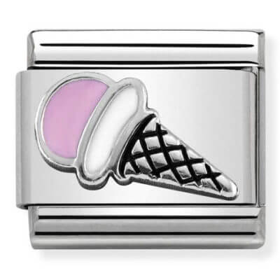 Original Charm for Nomination’s Composable Classic bracelet in stainless steel, oxidised sterling silver and enamel with pink Ice Cream. Made in Italy. Jewellery for someone who never forgets their sweet side.