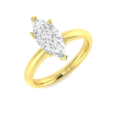 A classic Diamond solitaire ring comprising of 1 Marquise cut 6-claw set Natural Diamond with plain 18ct yellow gold shank