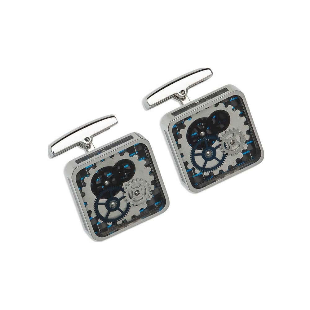 Unique & Co Men’s Blue IP Plated Black Carbon Fibre Square Gear Cufflinks QC 276