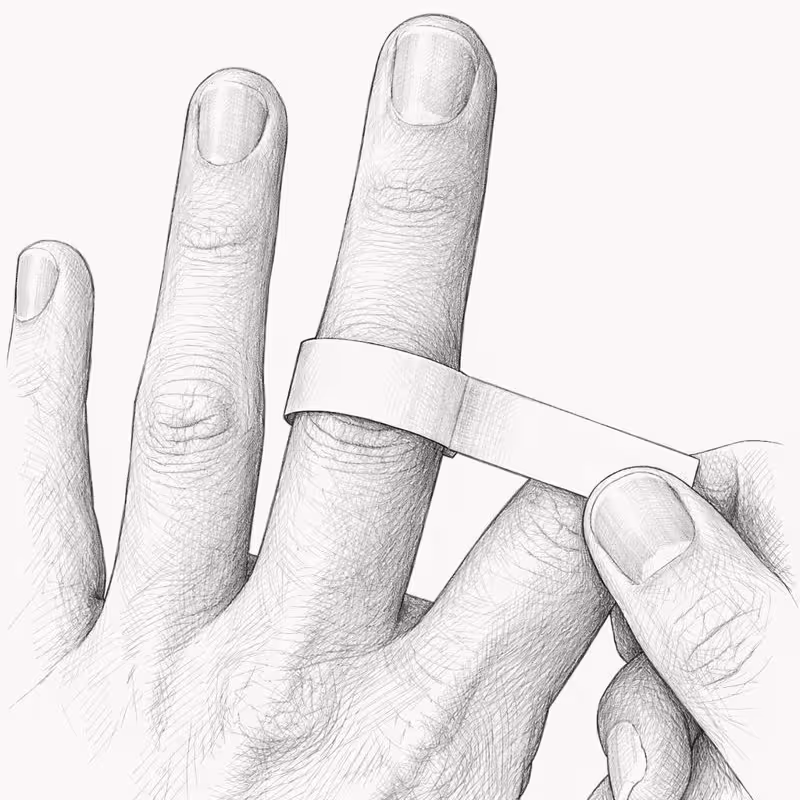 Place the paper around the base of your finger, where you would normally wear your ring. It should sit snugly against the skin without being too tight or leaving gaps.